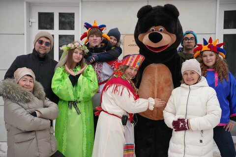 Сказочница - Затейница со своими веселыми Скоморохами и Михайло Потапычем скучать не давали - одна игра сменяла другую - но проигравших не было… Премьера танца «Валенки» - состоялась не на сцене - плясали прямо на площадке у школы в естественных декорациях снежной Зимы.